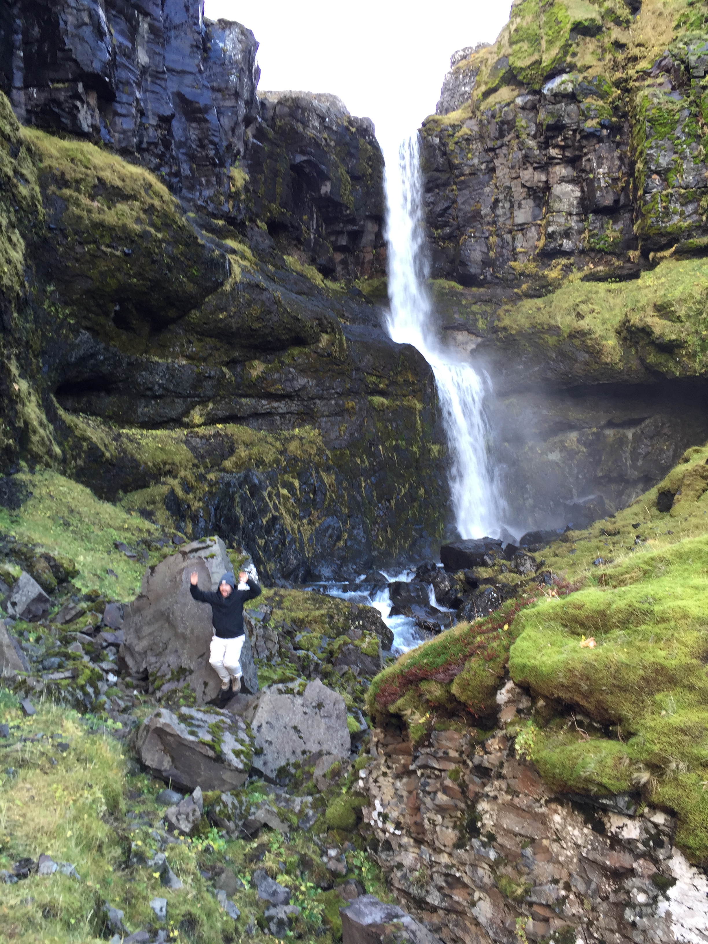 Drew, Lindsey and I set out to explore the Snæfellsnes Peninsula. Using the notes I could jot down from Kathy, and the Drive it Yourself Map from www.IheartReykjavik.com, we set out for an adventure. What a day this was. The scenery was beautiful. Thankfully I was driving because I stopped the car no less that 821 times to take a picture. It was like you saw something and thought, nothing could be more beautiful than this spot. And you kept thinking that until exactly 7 seconds later when you saw something more stunning. The worst part of that trip was when a car was behind me or I was on a bridge and couldn’t stop the car in the middle of the road for a photo! We hit a few of the must do spots, with a 6 hour round trip drive without stops, we knew we wouldn’t be able to see everything on everyone’s lists. But for me, the most magical part of the trip was finding the double waterfall. Don’t ask me where we were, don’t ask me how to get back there, but somewhere between the Crater and Kirkjufell there is this little spot between a sheep farm and a sheep farm where you can climb into the waterfall. It wasn’t on the map, or a list, or suggested at the visitor center (we needed a bathroom…stat!), or by Kathy. There were no plans to see it. We just stumbled upon it. So it was ours. We made our own way.